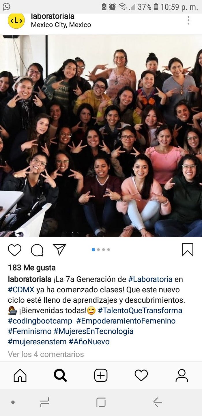 Entrar a Laboratoria, un bootcamp de 6 meses que te prepara como UX o Front-End fue increíble, conocer mujeres que desde distintos enfoques y backgrounds buscan una oportunidad laboral en el mundo tech es muy enriquecedor.